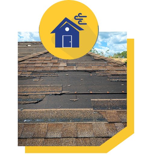 - Partial or missing shingles due to high winds